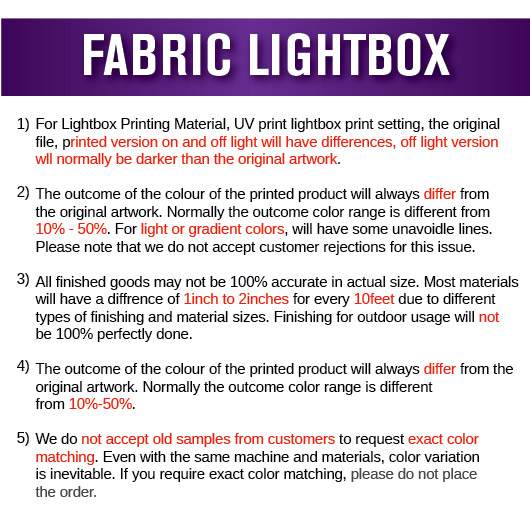 We shall not be held responsible for any dissatisfaction caused by colour variation. If your project requires strict colour accuracy and cannot tolerate variation, we advise not to proceed with the order.
